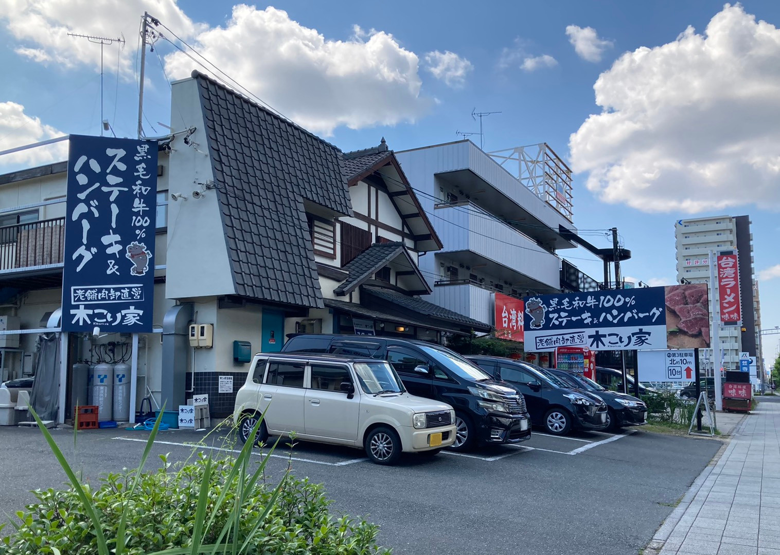 丸ヨ建設 名古屋支店より、車で2~3分の国道1号線沿い前浜通交差点すぐの所にある老舗卸肉直営のハンバーグ店「木こり家」さんのご紹介です。