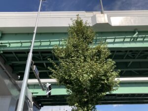 国道1号線沿いには、街路樹としてイチョウの木が植えられています。