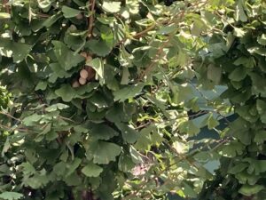 支店の前にも、イチョウの木があり、葉は、まだ緑色ですが、既に銀杏が、たくさん実っています。