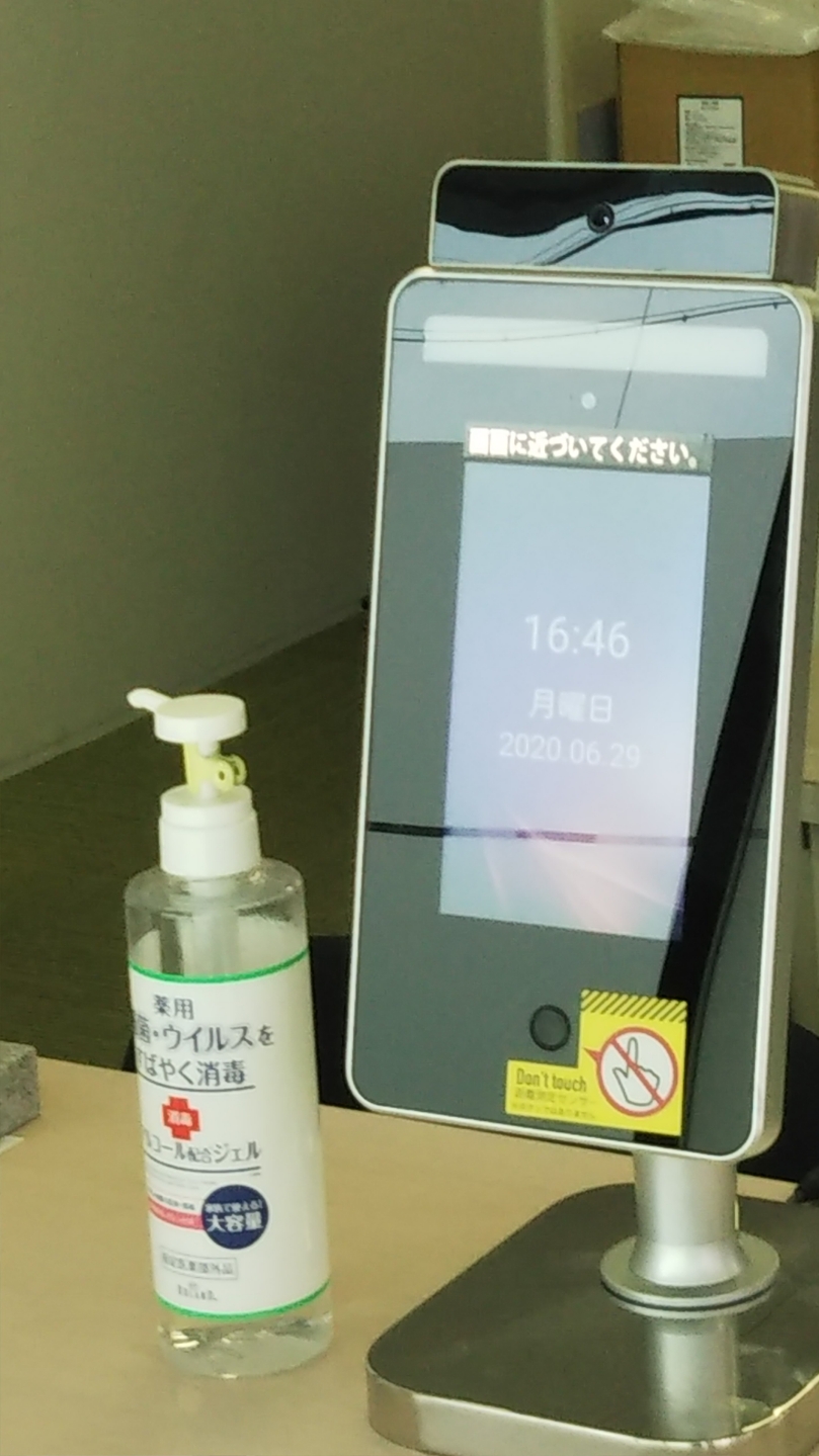 丸ヨ建設1F入口の受付カウンターに非接触で体温が測れる、体温測定カメラを設置しました。