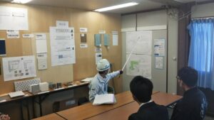 監督の仕事内容や今やっている作業の内容等を見学してもらいました。