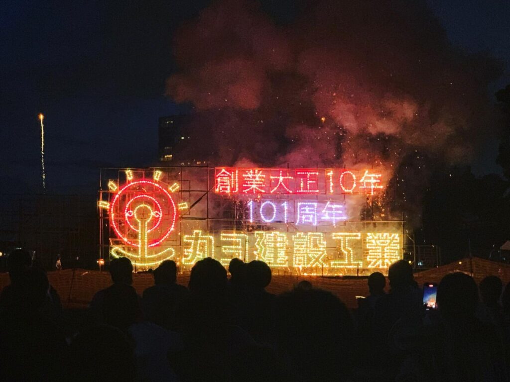 今年で創業101年になりましたので、記念に「仕掛花火」を行いました。