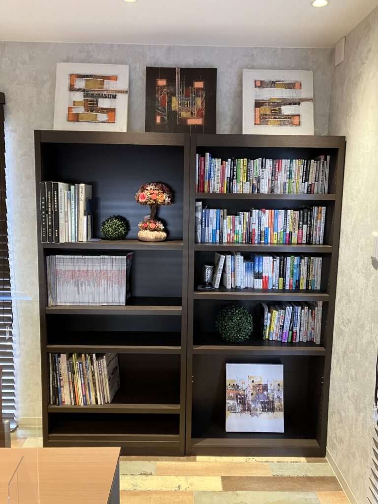 丸ヨ建設では社内設備として、本棚を設けています。