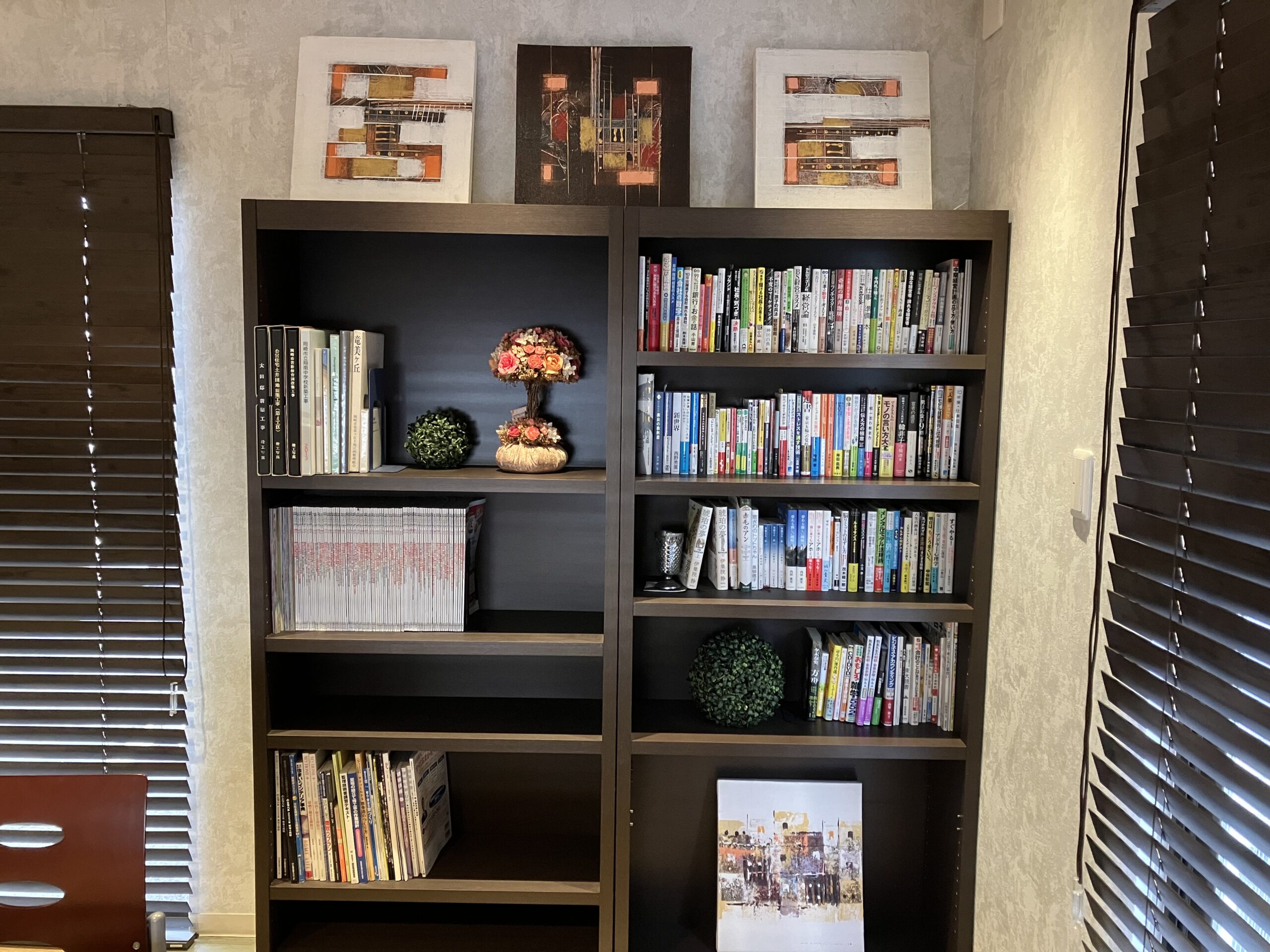丸ヨ建設では社内設備として、本棚を設けています。