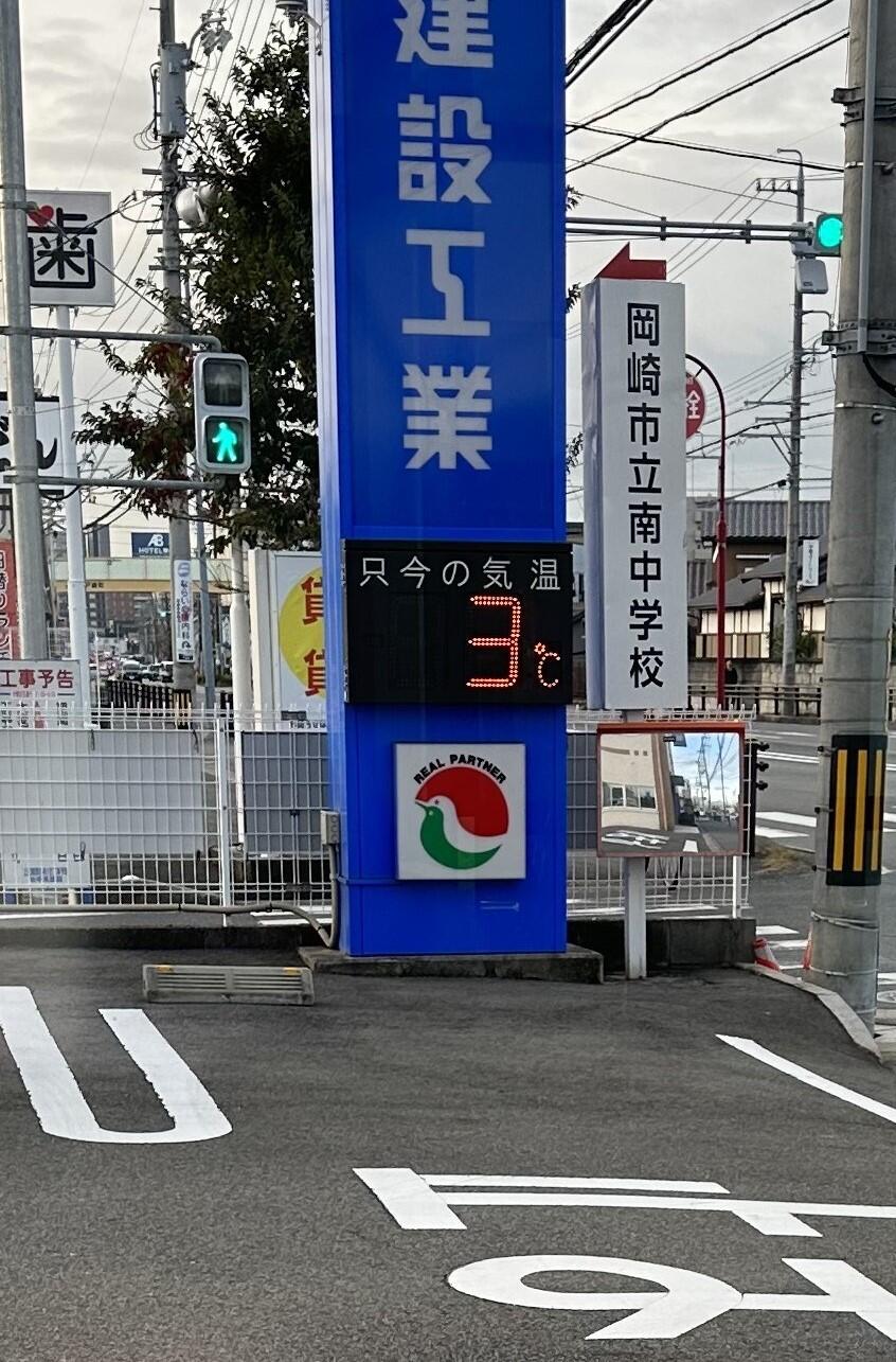 丸ヨ建設 岡崎本社 R5・12月の温度計『3℃』