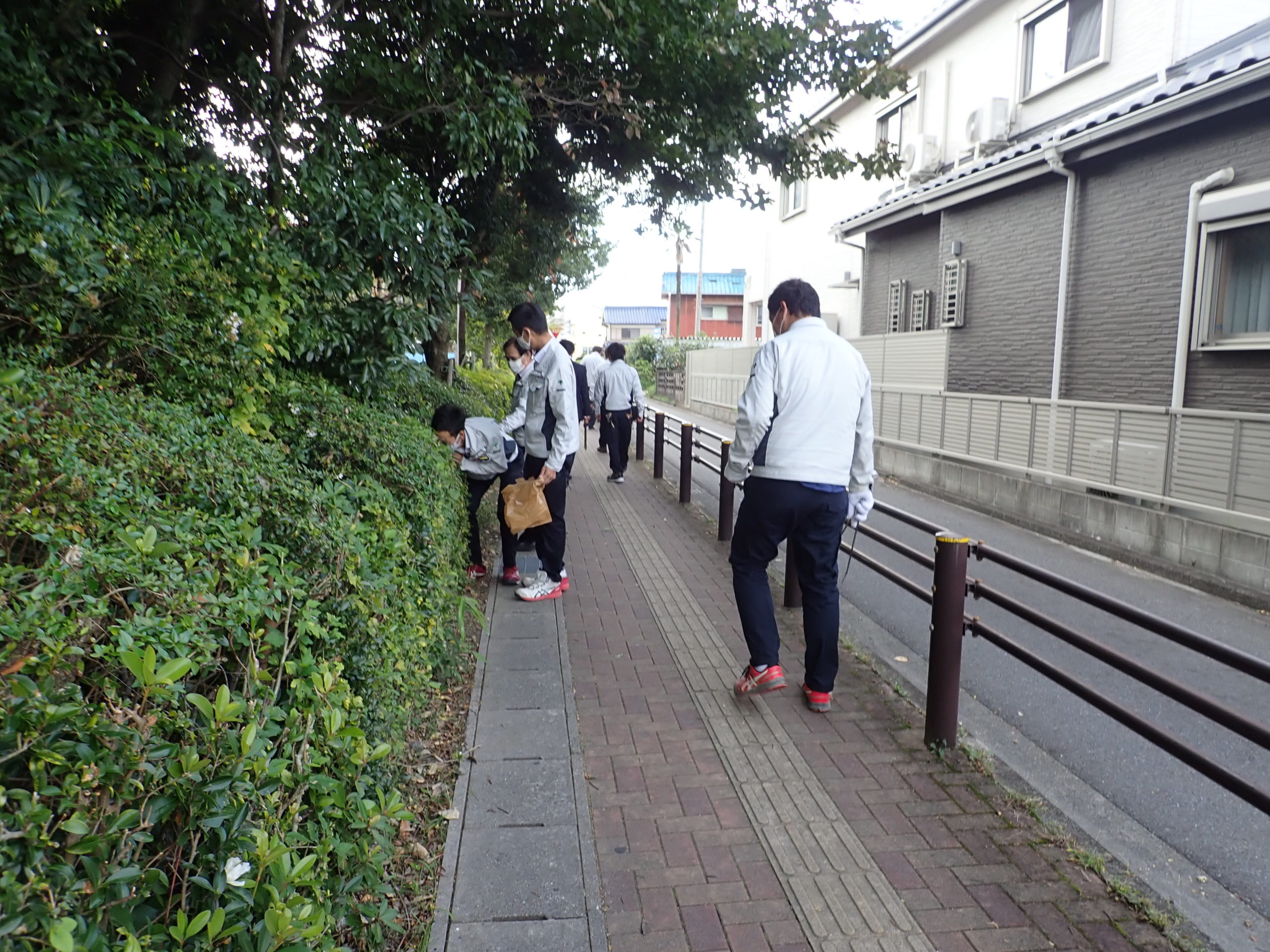 たばこの吸い殻などのごみを拾ったり、縁石や電柱付近に生えた雑草を抜いたりと、ちょっとしたことですが、会社の周辺の清掃活動を通して、地域の皆様が気持ちよく過ごせるように心がけています。