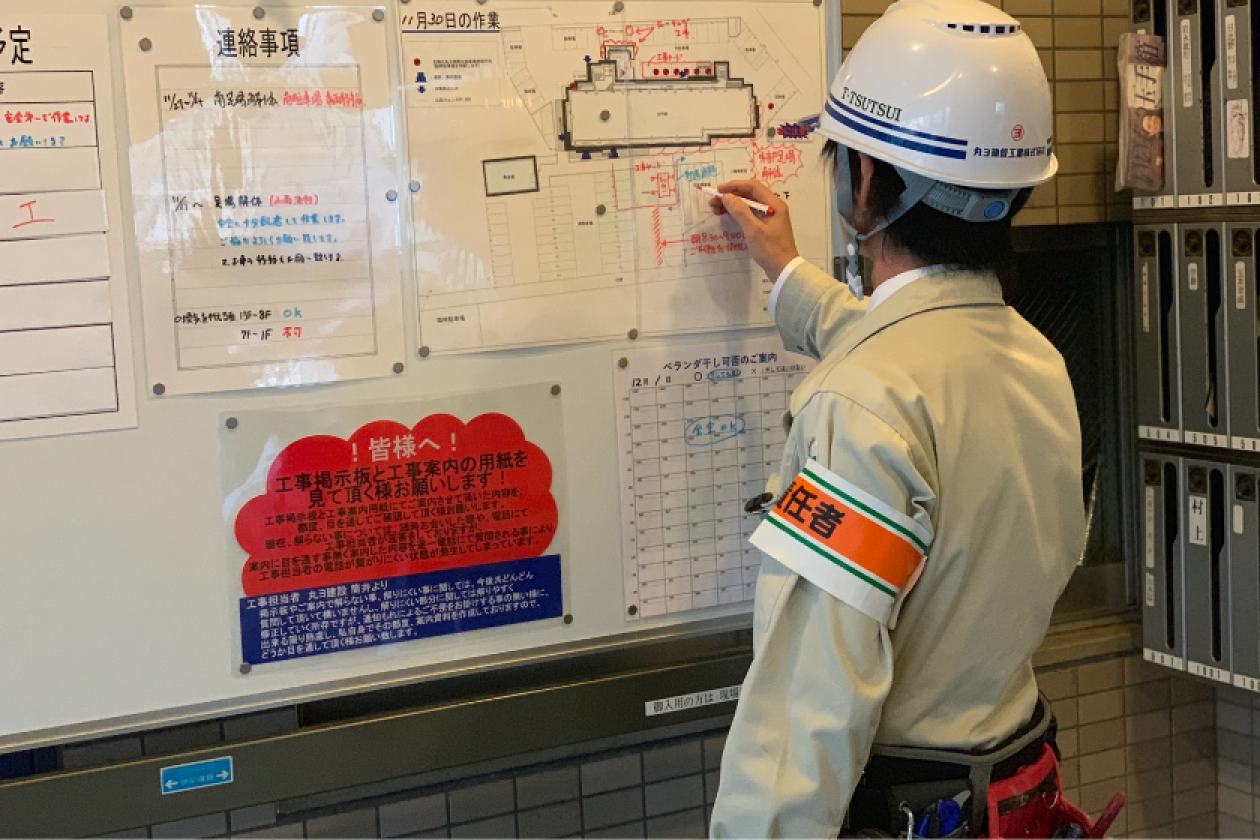 重要なのは、それぞれの作業において何が危険か、何が事故につながるかを予測し、注意喚起すること。それに工事現場での事故は、作業員の不注意や連携不足、設備の不備によって起こることが大半ですから、事前の打ち合わせを徹底しておけば、ほとんどの事故は回避することができます。